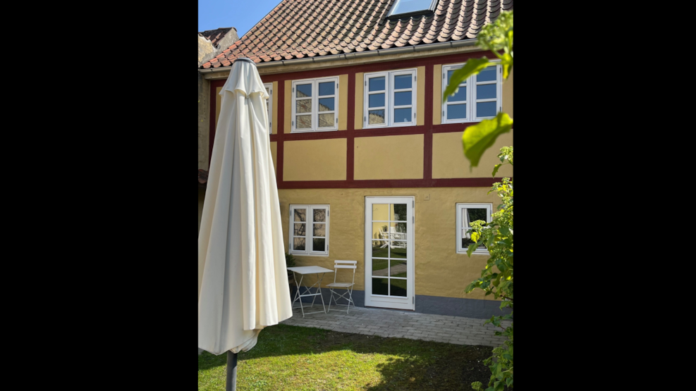 Lejligheden ligger på 1. sal i et charmerende gammelt byhus fra 1800-tallet i Kertemindes gamle bykerne - blot 150 meter fra hovedgaden, Langegade.